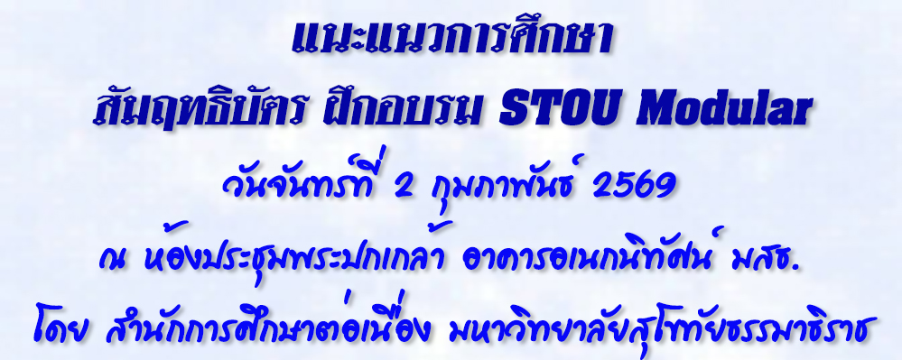 จัดทำโดย ฝ่ายบริการเผยแพร่ทางไกล สำนักการศึกษาต่อเนื่อง มหาวิทยาลัยสุโขทัยธรรมาธิราช อีเมล์ : sumrit.oce@stou.ac.th โทรศัพท์ 0 2504 7711-2 โทรสาร 0 2503 3379 |