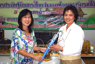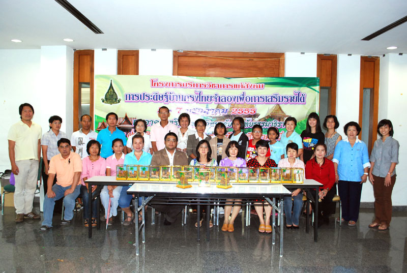 " การประดิษฐ์บ้านทรงไทยจำลองเพื่อการเสริมรายได้ " วันที่ 5 - 7 กรกฎาคม 2555 ณ อาคารตรีศร ชั้น 4 มหาวิทยาลัยสุโขทัยธรรมาธิราช