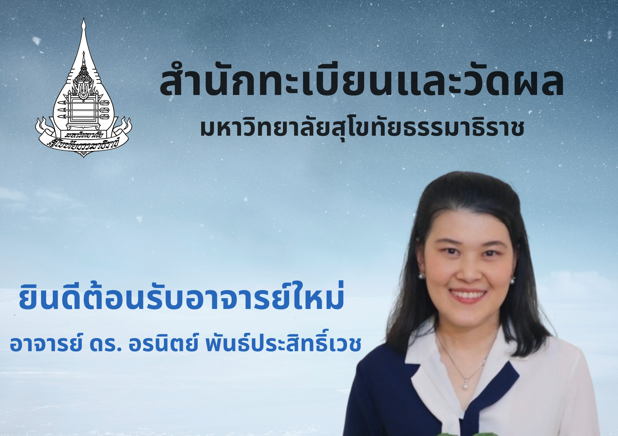สำนักทะเบียนและวัดผลยินดีต้อนรับอาจารย์ใหม่ อาจารย์ ดร.อรนิตย์ พันธประสิทธิ์เวช