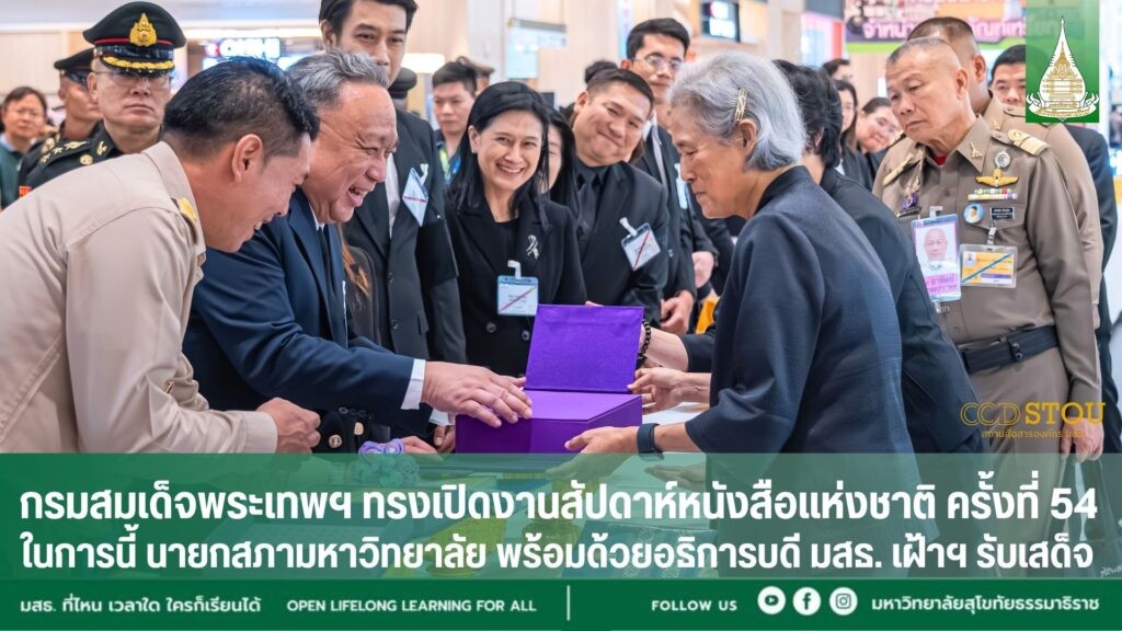 กรมสมเด็จพระเทพฯ ทรงเปิดงานสัปดาห์หนังสือแห่งชาติ ครั้งที่ 54 ในการนี้ นายกสภามหาวิทยาลัย พร้อมด้วย อธิการบดี มสธ. เฝ้าฯ รับเสด็จ
