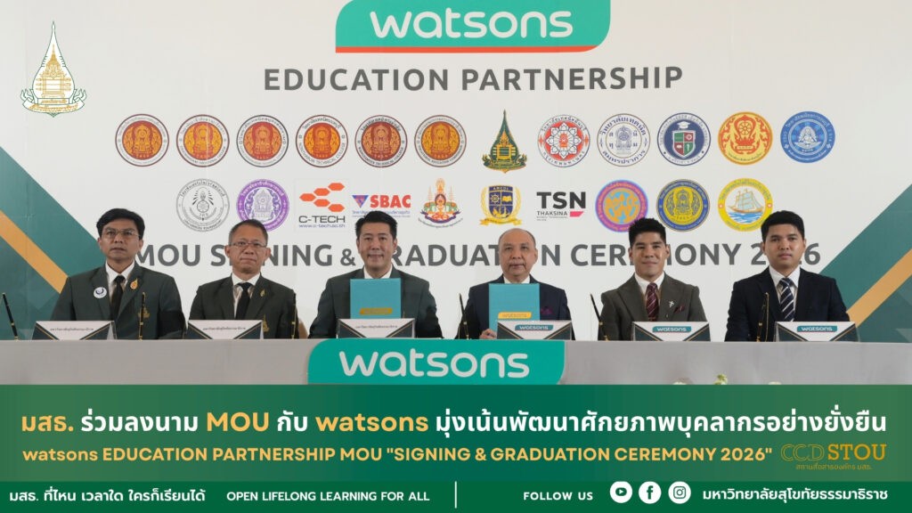 มสธ. ร่วมลงนาม MOU กับ watsons มุ่งเน้นพัฒนาศักยภาพบุคลากรอย่างยั่งยืน watsons EDUCATION PARTNERSHIP MOU “SIGNING & GRADUATION CEREMONY 2026”
