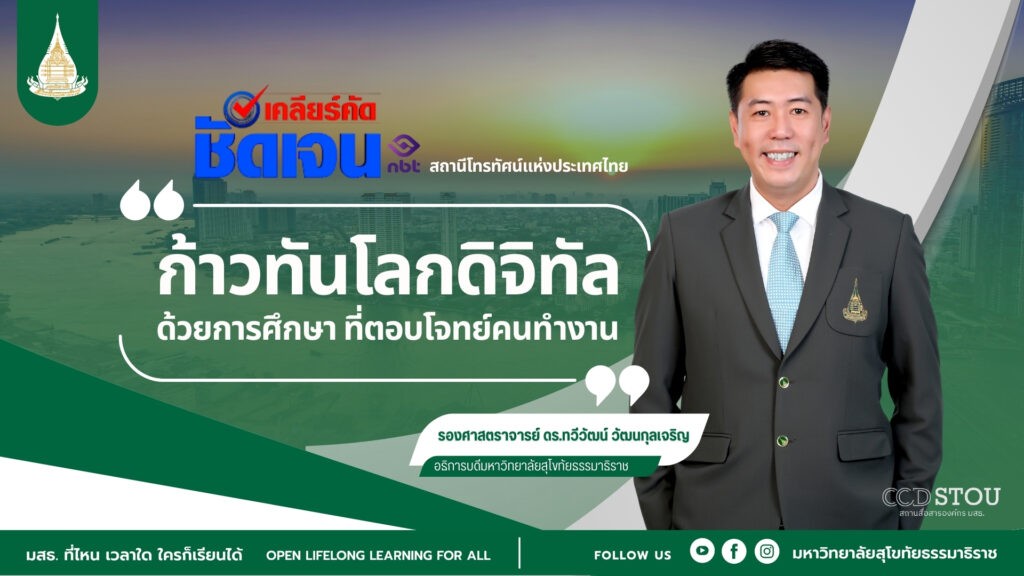 มสธ. ร่วมออกรายการสด “เคลียร์คัด ชัดเจน” สถานีโทรทัศน์แห่งประเทศไทย เคลียร์ทุกประเด็นรูปแบบการศึกษาของมหาวิทยาลัยฯ สู่การ “ก้าวทันโลกดิจิทัล ด้วยการศึกษาที่ตอบโจทย์คนทำงาน”