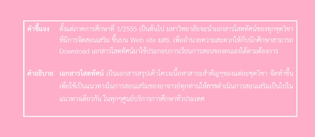 หมายเหตุ สำหรับชุดวิชาอื่นๆ