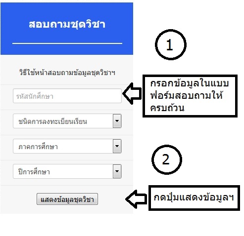 ส่วนประกอบของหน้าจอแสดงผล ข้อมูลชุดวิชาที่เปิดสอนและตารางสอบ |