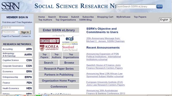 (Source: http://www.ssrn.com/en/ retrieved 30/5/2014)