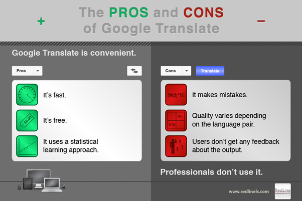 (Source: http://www.redlinels.com/2012/05/16/pros-and-cons-of-google-translate/ retrieved 12/3/2014)
