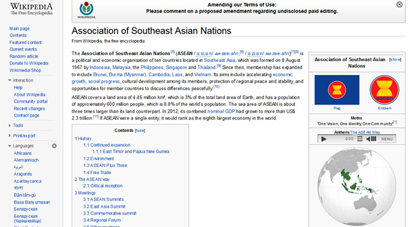 Figure 13 A Wikipedia article on ‘Association of Southeast Asian Nations’