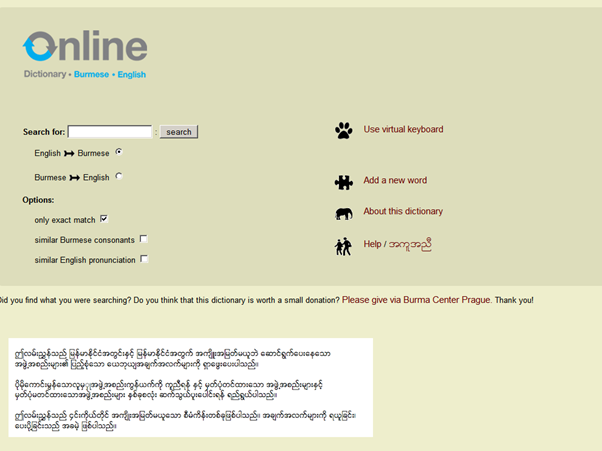 Currently, there are a number of online bilingual dictionaries of the local languages spoken in ASEAN countries. You may want to take a look at some examples given below (Figure 9) and do more searches on your own to locate more.