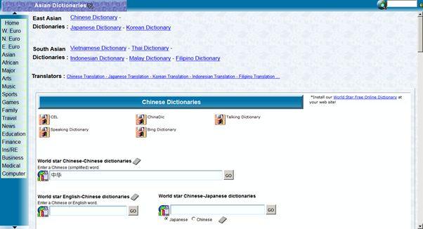 In addition, several bilingual dictionaries can be combined together and offered in a single web page for easier access and search. The following website offers search and access to several online bilingual dictionaries, such as Vietnamese, Thai, Indonesian, etc. Users simply choose the box indicating the dictionary desired, and then enter the term to be translated without going to one dictionary website after another (Figure 10).