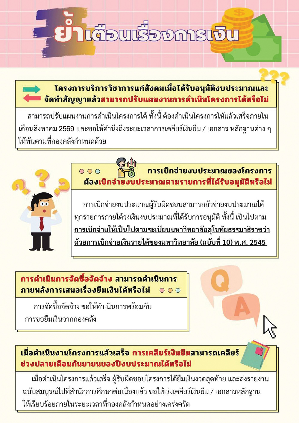 คำชี้แจงการยืมเงินที่เกี่ยวข้องโครงการบริการวิชาการแก่สังคม |