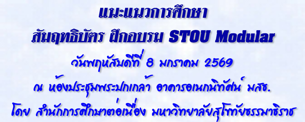 8 มกราคม 2569 สำนักการศึกษาต่อเนื่อง โดย นายชัยณรงค์ นพศิริ หัวหน้าฝ่ายบริการเผยแพร่ทางไกล