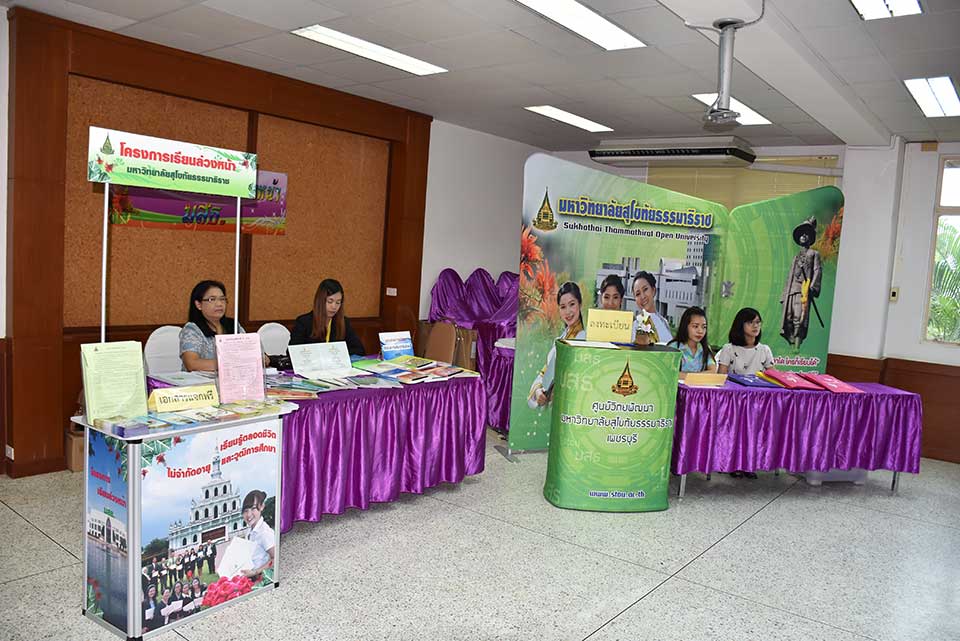 นางสาวฐิตารีย์ พัทธนันท์ศรี หัวหน้าฝ่ายบริหารการฝึกอบรม และทีมงานฝ่ายบริการเผยแพร่ทางไกล สำนักการศึกษาต่อเนื่อง มสธ. เข้าร่วมงานสัมมนา โครงการเรียนปริญญาตรีล่วงหน้า ณ ห้องประชุมศูนย์วิทยพัฒนา มสธ.เพชรบุรี โดยมีครู อาจารย์ และนักเรียนระดับอุดมศึกษา ประมาณ 50 คน จำนวน 31 โรงเรียน โดย นายวรชาติ อำไพ ผู้อำนวยการศูนย์วิทยพัฒนา มสธ.เพชรบุรี ประธานเปิดการสัมมนา จัดบูธแนะแนวและมอบมุมการศึกษาโครงการเรียนปริญญาตรีล่วงหน้า เผยแพร่และประชาสัมพันธ์หลักสูตรฝึกอบรม หลักสูตรปริญญาตรี หลักสูตรสัมฤทธิบัตร เป็นแนวทาง การจัดการศึกษาสำหรับนักเรียนที่มีความพร้อม ในการเรียนปริญญาตรีล่วงหน้าระหว่างศึกษาอยู่ในระดับมัธยมศึกษา สะสมชุดวิชาเมื่อพร้อมจึงโอนเข้าหลักสูตรปริญญาตรี ของ มสธ.ได้รับโอกาสที่ดีเรียนปริญญาตรีก่อนจบมัธยมปลาย จบปริญญาตรีอายุยังน้อย พร้อมเพิ่มทางเลือกในการศึกษาต่อและประกอบอาชีพ |