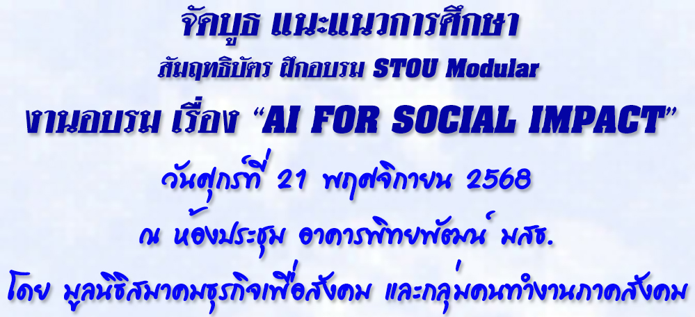หลักสูตรฝึกอบรม และ STOU Modular ให้แก่ผู้เข้าร่วมอบรมวิชาการเชิงปฏิบัติการ |
